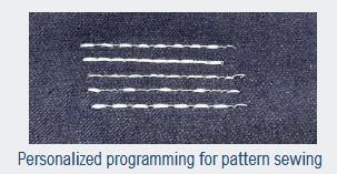 button. Stitch control is managed by a servo step motor, ensuring the reverse stitch matches the forward stitch in length. |